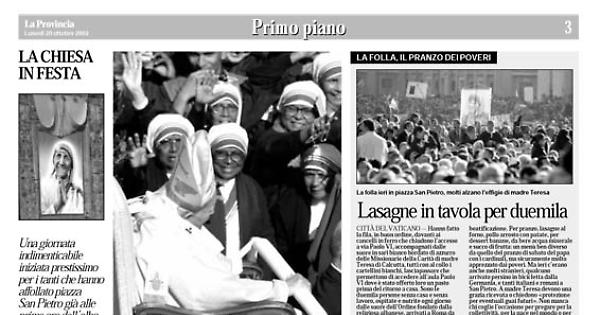 Davanti a una folla immensa, multietnica e multireligiosa, colorata negli abiti e nella pelle, il Papa ha proclamato beata «la piccola donna innamorata di Dio», che ha sempre considerato una santa e che tale avrebbe voluto fare subito, saltando la tradizione e le procedure. Ma anche il Papa a volte deve rinunciare ai suoi desideri e ieri ha letto soltanto la formula di beatificazione, passaggio importante e indispensabile che impegna la sua autorità di pontefice. Ma, per il resto, per la prima volta non ha pronunciato neppure poche parole dell'omelia, parlando solo brevemente all'Angelus.