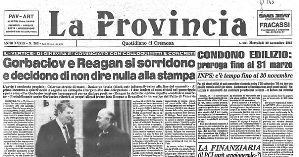 Questa impressione è stata confermata dalla prima «vera» notizia emersa dopo il colloquio iniziale tra Reagan e Gorbaciov, un colloquio durato oltre un'ora anziché i quindici minuti previsti. I due interlocutori si sono accordati per non diffondere informazioni sull'andamento dei colloqui fino alla conclusione dei medesimi: un «black out» totale, decretato dai rispettivi leaders per non turbare l'atmosfera con fughe di notizie.