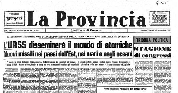 Agli Stati Uniti e ai paesi euro-occidentali Andropov lancia tramite la «dichiarazione» un appello affinché ancora una volta valutino tutti i pericoli insiti nel dislocamento dei nuovi missili americani che a suo avviso possono rappresentare una «catastrofe» per l'Europa e per l'umanità tutta.