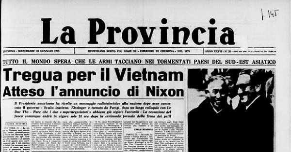 Si ricorda che la cessazione del fuoco entra in vigore, tuttavia, solo 24 ore dopo la cerimonia formale della firma dei patti e che il calendario delle varie procedure susseguenti alla sigla non è stato ancora fissato. Le squadre internazionali di controllo dell'armistizio «in loco» dovrebbero cominciare al tempo stesso ad affluire in Vietnam ma non si hanno ancora notizie precise al riguardo.