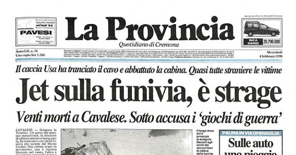 E Scalfaro chiede a Romano Prodi «l'immediata apertura di un'inchiesta per accertare cause, modalità e responsabilità» della sciagura di Cavalese. E aggiunge un invito pressante a «promuovere un'urgente e attenta revisione normativa della disciplina dei voli militari per impedire il ripetersi di ulteriori tragedie». L'impressione nel mondo politico è enorme. Oggi Andreatta riferirà in commissione difesa della Camera. Prodi apprende la notizia a Tallin, in Estonia. È incredulo: «Uno degli incidenti più strani al mondo. L'aereo che vola evidentemente troppo basso». Poi Prodi ha avuto un colloquio con il presidente Clinton.