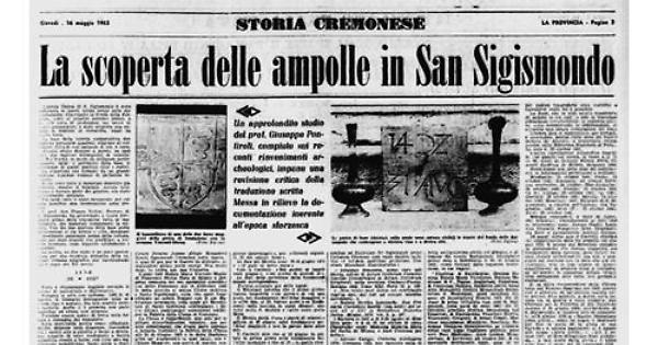 Un approfondito studio del prof. Giuseppe Pontiroli, compiuto sui recenti rinvenimenti archeologici. impone una revisione critica della traduzione scritta. Messa in rilievo la documentazióne inerente all'epoca sforzesca