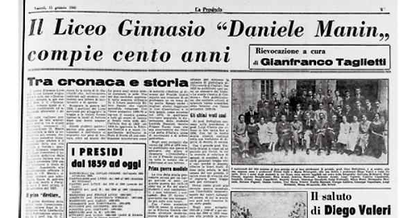 Il nostro Ginnasio-Liceo trae le sue lontane origini, come è noto, dal «Gymnasium» romano, o, per meglio dire, è il «Gymnasium» romano quale si è venuto modificando ed adeguando attraverso i secoli. L'anno scolastico iniziato col primo ottobre è il centesimo della sua vita «lunga e florida», giacché il Ginnasio imperiale e il Liceo ricevettero il loro assetto definitivo dalla legislazione italiana con la legge 3 novembre 1859 con cui assunsero il titolo di «regio». Apponendo alla denominazione ufficiale il nome di « D. Manin », si intese onorare una nobilissima figura -di patriota e di eroe, morto a Parigi in esilio 2 anni prima, il 22 settembre del 1857.
