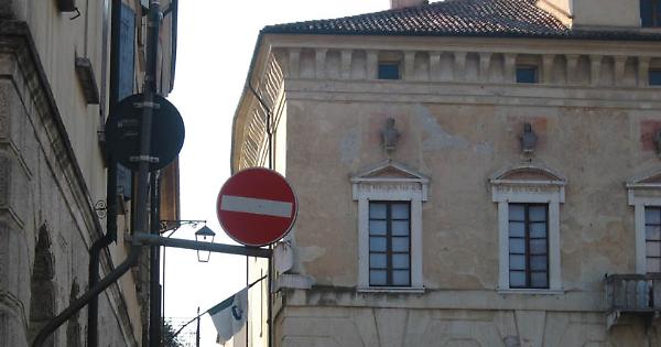 «Chi le ha posizionate, ha voluto lasciare il suo segno in ogni foto e inquadratura di qualsiasi palazzo o piazza così da essere riconosciuto da esempio per tutto il mondo. Forse eravamo troppo liberi di percorrere le strette vie di Sabbioneta, per cui è stato necessario indicare il divieto di sosta o di transito anche dove è evidente non si possano fare...Chissà com’era la viabilità nel ‘500! Allora, forse, i carri carichi di fieno, letame e pietre trainati da buoi o da cavalli, i contadini, gli artigiani, i cavalieri, le dame, le portantine e le carrozze non avendo segnali indicatori così chiari si intasavano nelle strade creando ingorghi inestricabili?».
