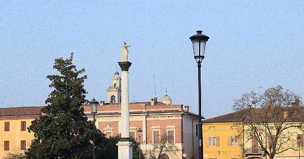 Al centro della piazza castello, antica Piazza d'Armi, si erge una colonna romana, con base e capitello in bronzo, opera di Andrea Cavalli nel 1584. Sul capitello poggia la statua di Pallade, pregevole scultura in marmo bianco, che fu acquistata dal duca per la sua collezione archeologica.