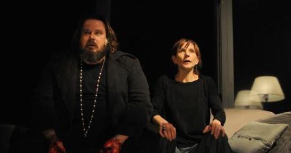 Macbeth e Lady Macbeth sono due piccoli borghesi perennemente in scena ed hanno le fattezze di Giuseppe Battiston, attore apprezzato per la sua folgorante carriera cinematografica e Frédérique Loilée, attrice feticcio di Andrea De Rosa, già apprezzata nella Fedra di Hugo von Hofmannsthal. Il regista — nella sua lettura del dramma tradotto da Nadia Fusini con cui ha condiviso l’interpretazione del testo — propende per la banalità del male e annega tutta la vicenda in un salotto di casa dove oltre all’utilizzo dell’alcool a profusione i due appaiono piuttosto che aspiranti geni del male, due piccoli borghesi, una coppia sterile in cui a dominare è la paura, una paura annichilente e che spinge a procedere in una violenza cieca, tanto quanto insensata e assurda e per questo efferata, proprio come Olindo e Rosa, paragone azzardato dallo stesso regista e che ha finito col caratterizzare l’approccio degli spettatori e non solo alla messinscena, prodotta dallo Stabile di Torino e da quello del Veneto.