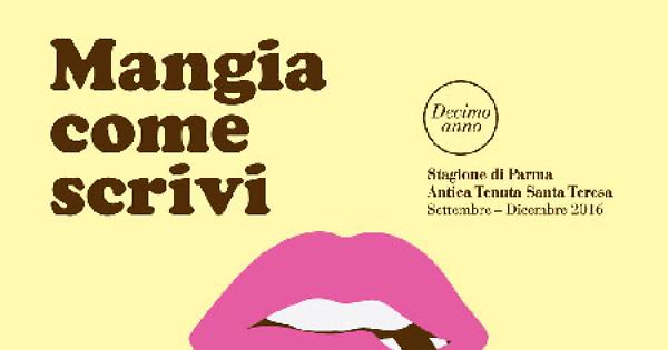 Parma - Ha raggiunto il traguardo della 10ma edizione "Mangia come scrivi", Rassegna gastronomica-letteraria-artistica, ovvero: 1 cena, 3 scrittori x 3 minuti (di reading), 9 opere d’artista.