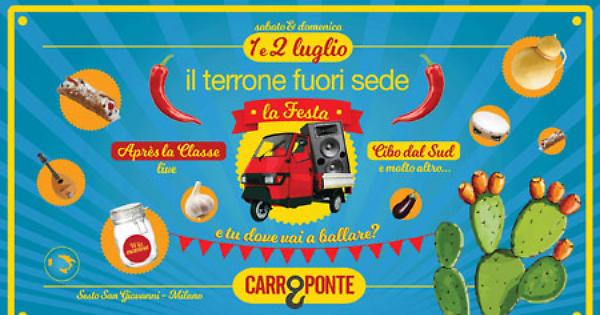 Iniziata la stagione estiva, sabato 1 e domenica 2 luglio al Carroponte:due giorni di musica e cibo “daggiù". Cosa fare quando l’afa attanaglia, il calendario avanza e le vacanze sembrano tanto, troppo lontane? Dopo aver fatto ballare 10.000 persone nelle maggiori venue del Nord Italia, il carrozzone de “Il terrone fuori sede – la festa” torna a far ballare Milano in un festival lungo due giorni tra musica, truck food e specialità del Sud.