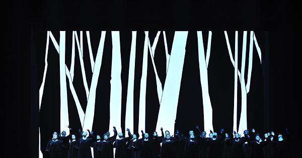 Robert Wilson cala la tragedia dell’eterna lotta del Bene contro il Male in un paesaggio visivo astratto, caratterizzato da un magistrale impiego delle luci: un vestito non convenzionale, con gestualità glaciali e luci ideate personalmente.