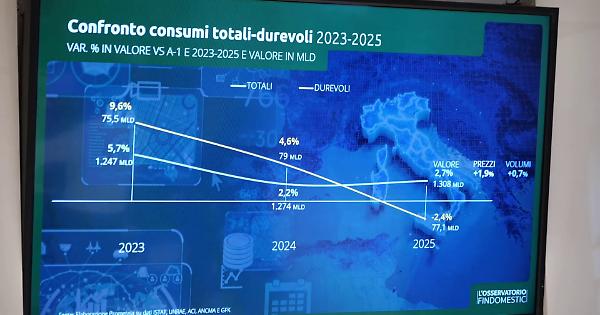 Beni durevoli, consumi in calo del 2,4%. La spesa nel 2025 scivola a 77 mld