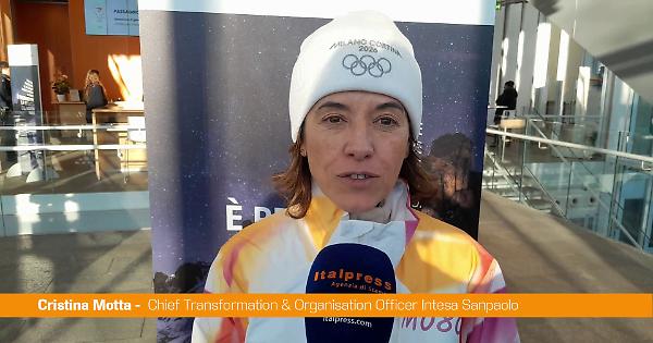 Fiamma Olimpica in sede torinese di Intesa Sanpaolo, Motta e Cascella tedofori