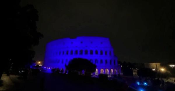 Colosseo illuminato di blu per giornata internazionale delle vittime del dovere